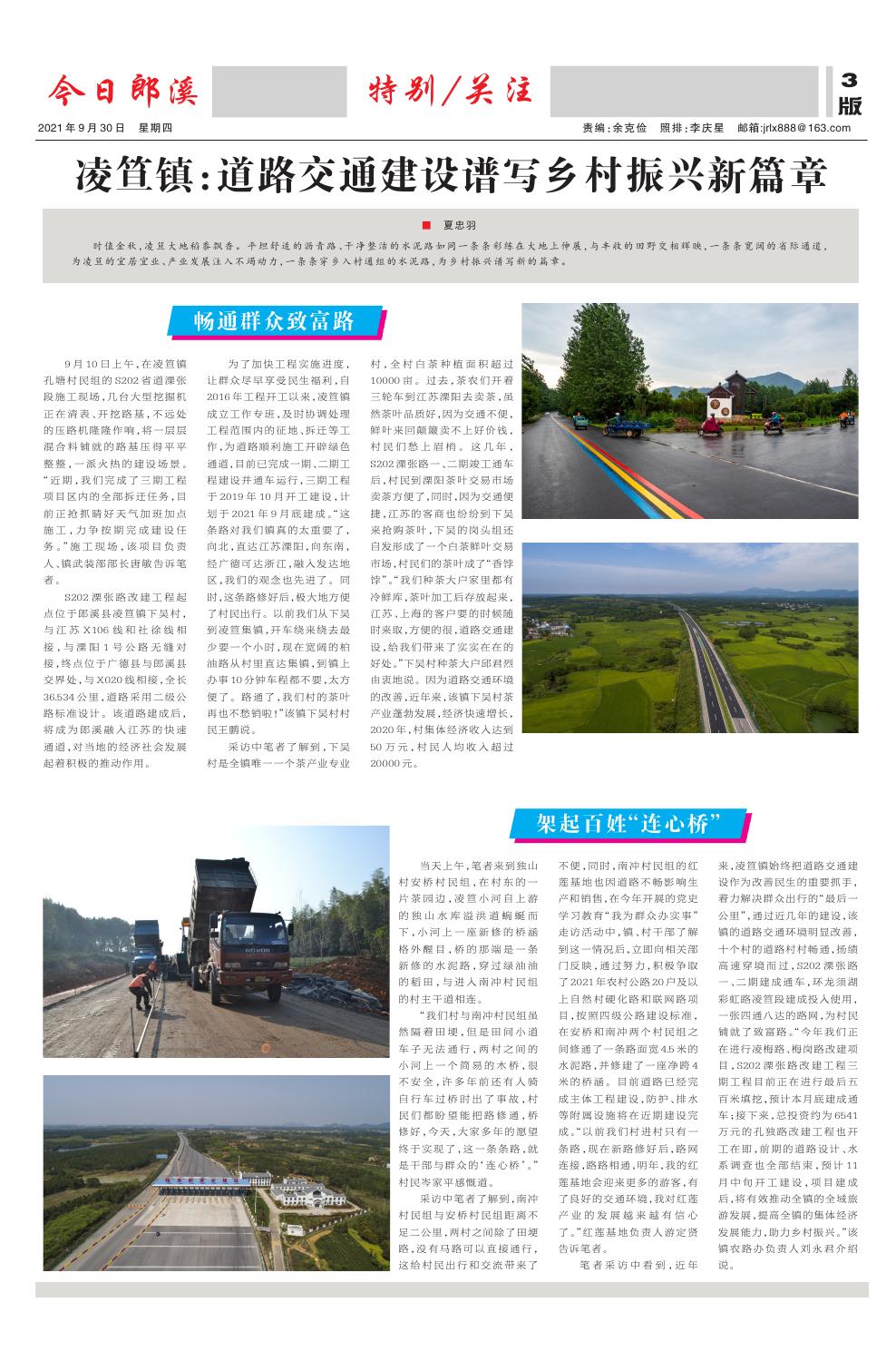 时值金秋,凌笪大地稻黍飘香。平坦舒适的沥青路、干净整洁的水泥路如同一条条彩练在大地上伸展,与丰收的田野交相辉映,一条条宽阔的省际通道,为凌笪的宜居宜业、产业发展注入不竭动力,一条条穿乡入村通组的水泥路,为乡村振兴谱写新的篇章。