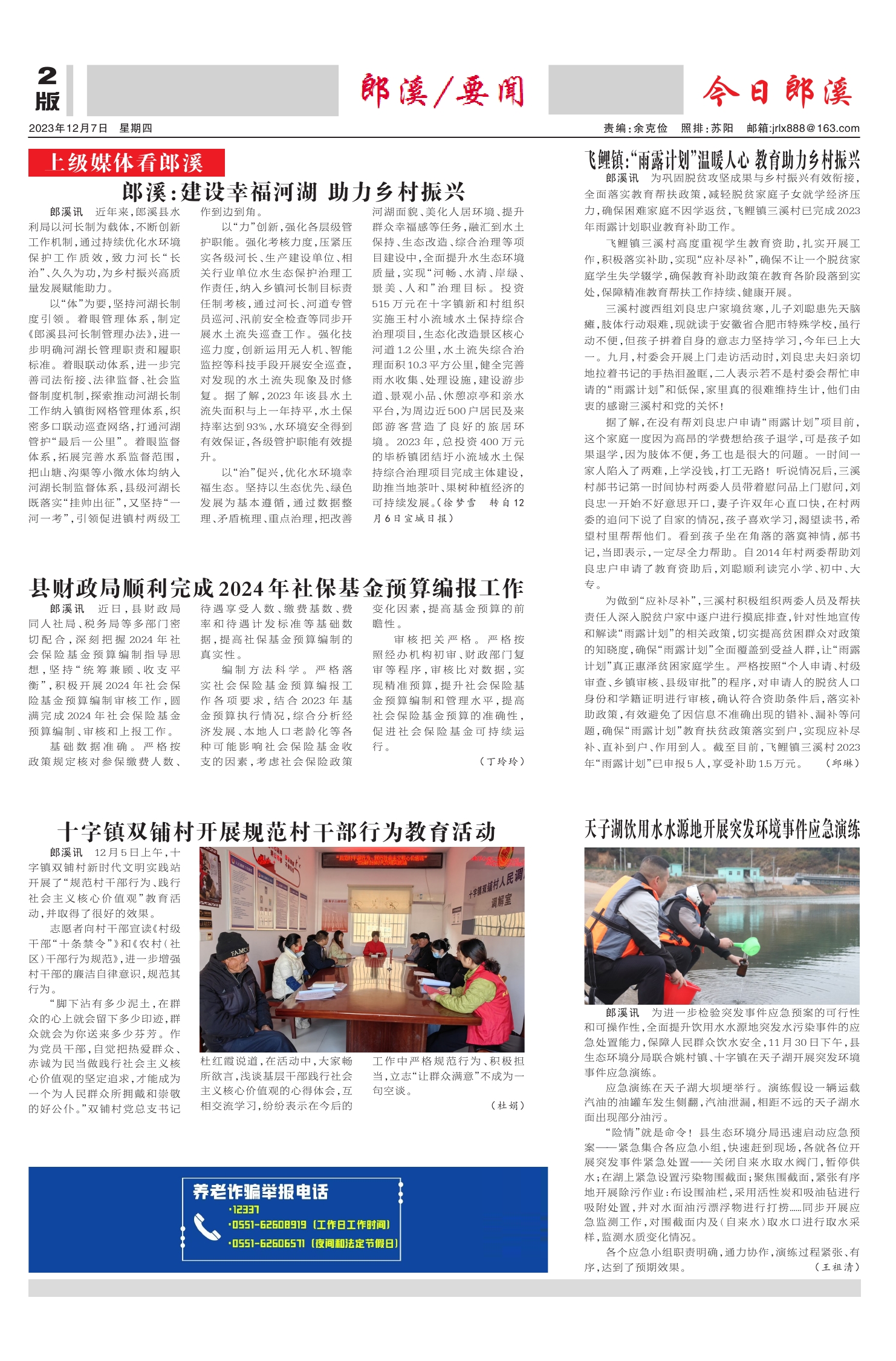 郎溪讯 近年来,郎溪县水利局以河长制为载体,不断创新工作机制,通过持续优化水环境保护工作质效,致力河长“长治”、久久为功,为乡村振兴高质量发展赋能助力。