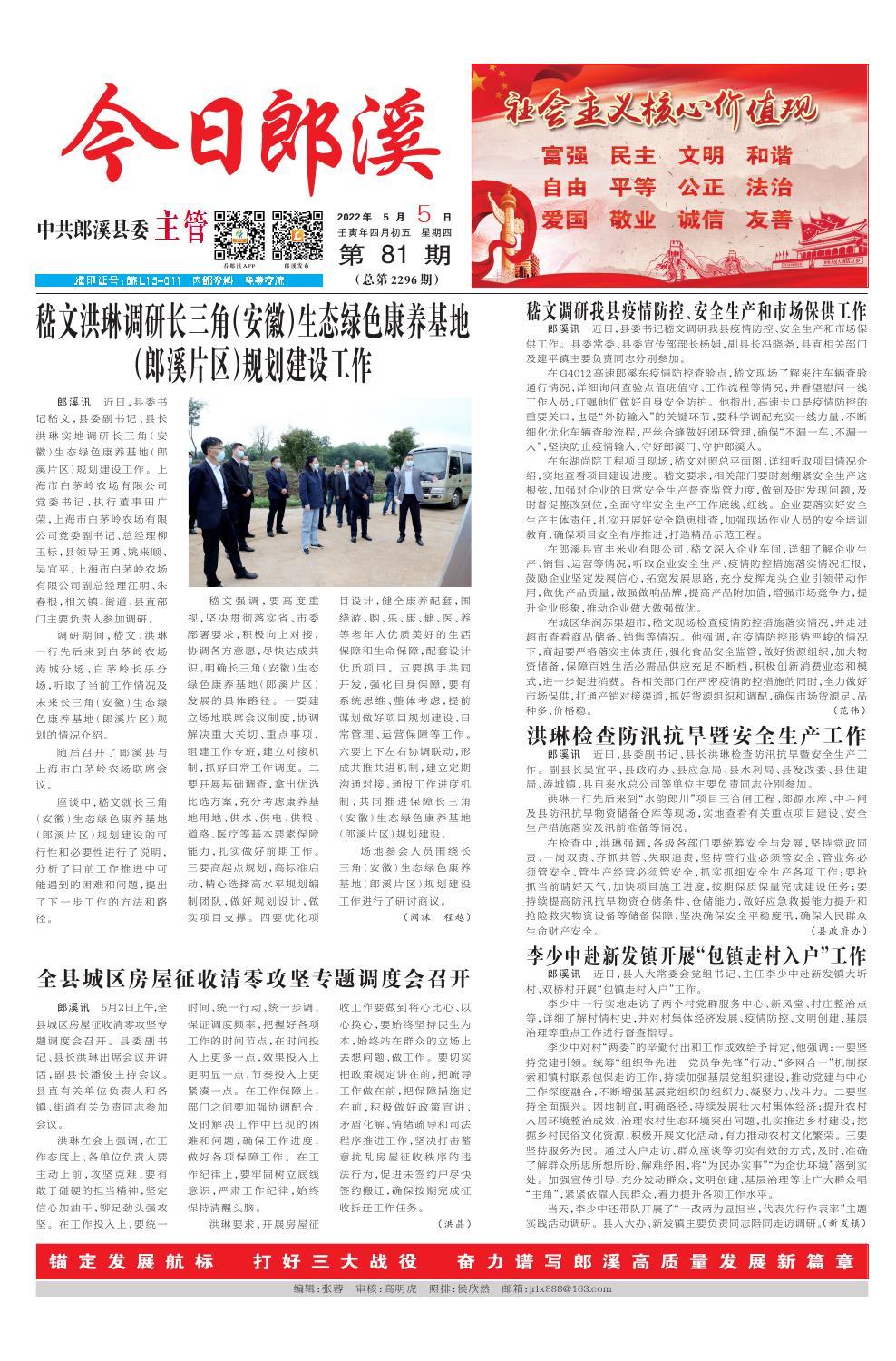 嵇文洪琳调研长三角(安徽)生态绿色康养基地(郎溪片区)规划建设工作